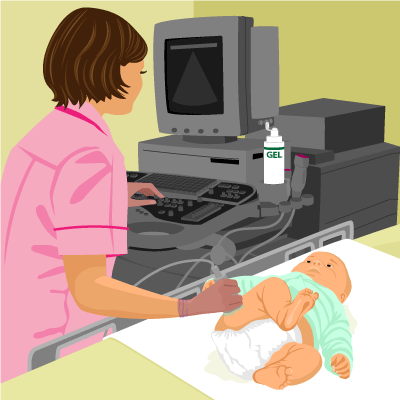 اگر پزشک شک کند که نوزاد ممکن است اختلال تکاملی مفصل ران (DDH) داشته باشد, از سونوگرافی برای بررسی های بیشتر کمک می گیرد.